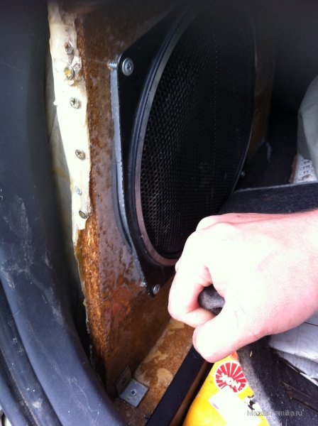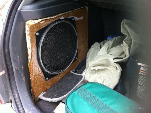 ![]() Делал в ЛЕВОМ крыле. Но корпус уголком, он повторяет половинку опоры ящика где запаска.Объем получился тоже примерно 20лДомкрат кстати хорошо помещается рядом с запаской. А там где был домкрат живет теперь насос.Единственное что светильник выключить пришлось. Динамик 75ГДН Карпетом все руки не дойдут облепить. На звук все равно не влияет.Усь лежит под креслом пассажирским. И кондер тоже.Звукан получился отменный, на улице вообще не слышно баса, в салоне улет.Еще недавно снимал усилитель и вот что выяснил:Полярность динамика имеет значение! Прикрутил саб не той полярностью слушаю баса нет, да чтож за Ё?! Поменял полярность на входе, думал какая разница где + и - поменять. Оказалось разница есть, поменял полярность динамика, бас вернулся. ![]() _________________